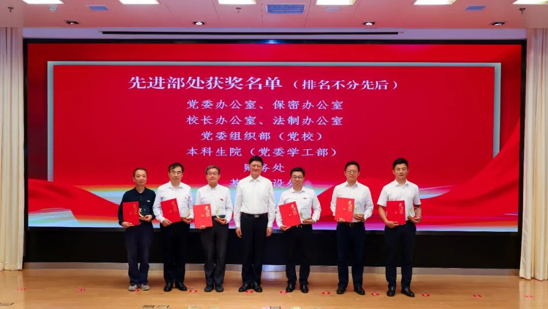 近年来机关各党支部、各部处在机关党的建设和机关建设方面取得显著成效,为充分发挥先进典型的表率示范作用,机关党委面向机关各部门和全体干部职工开展了2020—2021年度评优工作,评选出一批先进典型。现场对获奖单位、个人及工作单项奖进行逐一介绍。胡金波为机关先进部处颁奖。吕建为机关工作单项奖颁奖。校党委副书记薛海林,校党委副书记、纪委书记刘鸿健为机关先进科室/团队颁奖。副校长王志林、陆延青为机关先进工作者颁奖。校纪委副书记、机关纪委书记焦瑞华宣读表彰决定。