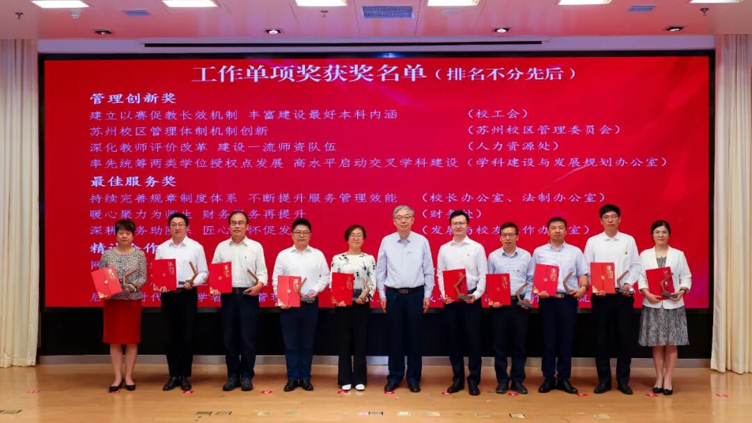 9月20日上午,2022年度南京大学机关干部大会暨2020—2021年度机关工作表彰会在仙林校区举行。校党委书记胡金波、校长吕建出席大会并颁奖。校党委常务副书记、机关党委书记杨忠作工作报告。