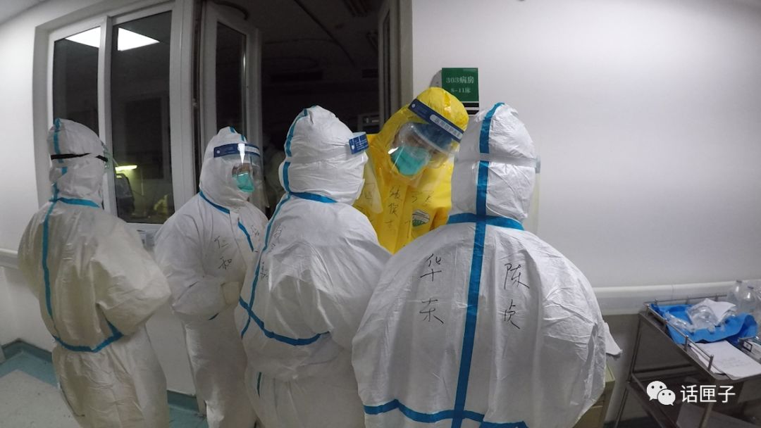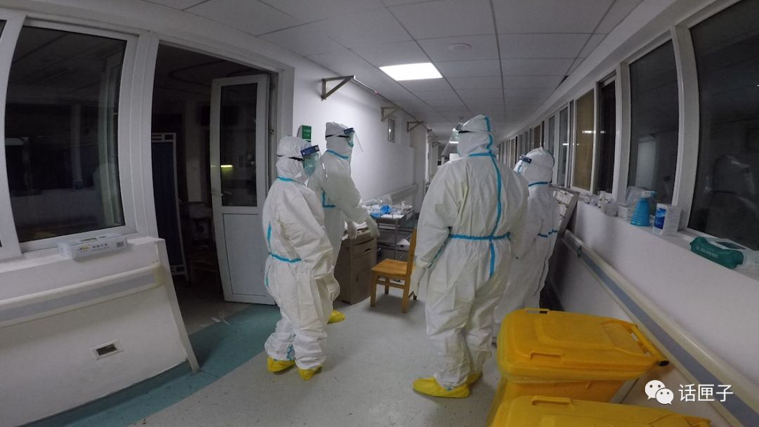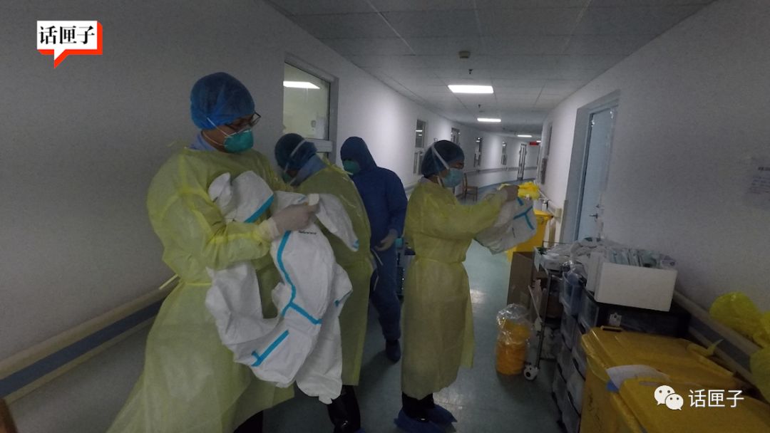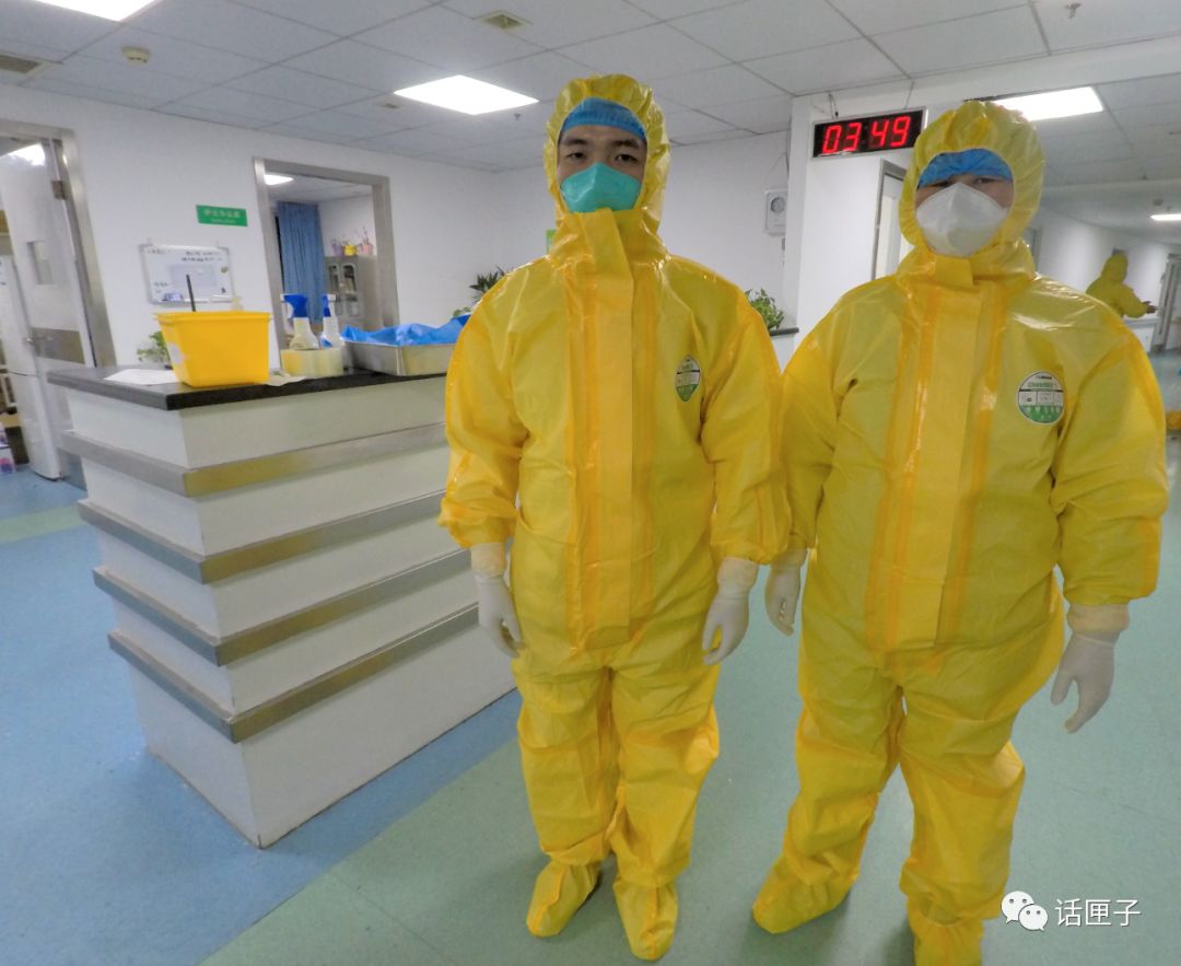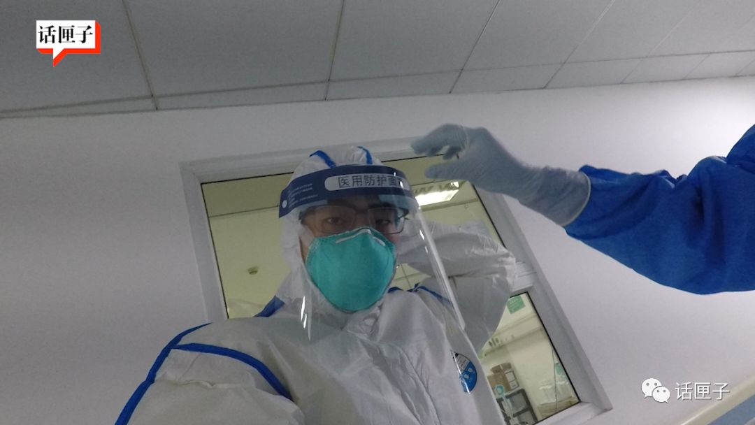 帽子、口罩、双层橡胶手套,鞋套……在医护人员的指导和帮助下,话匣君用了十来分钟终于全副武装,推开了那两道玻璃门。身上的隔离服是黄色的,和前段时间医护人员穿的蓝色款,不太一样。其实这两天,大家的装备已经不再整齐划一了,各种品牌、版本的都有,只要符合标准,就没问题!