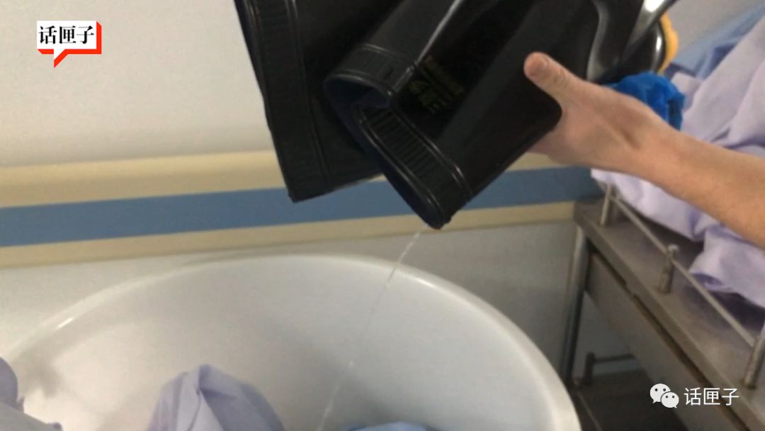 这位队伍里为数不多的男护士,像从游泳池里爬上来,从上到下被汗水完全沁透,手术服贴在身上。脱下鞋套、胶鞋,鞋里的水可以倒出来,长长的一串。