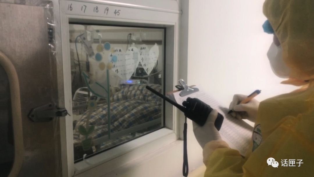 医护人员的工作,被撑得满满。大家仍在想方设法为病人解压,为他们,也为自己和队友加油打气!好几位护士在白色防护服的背后,写上“武汉加油”!隔着双重玻璃,没有对讲机听不到彼此讲话,但比个胜利的手势,也能让队友知道,自己不是在孤身奋战……