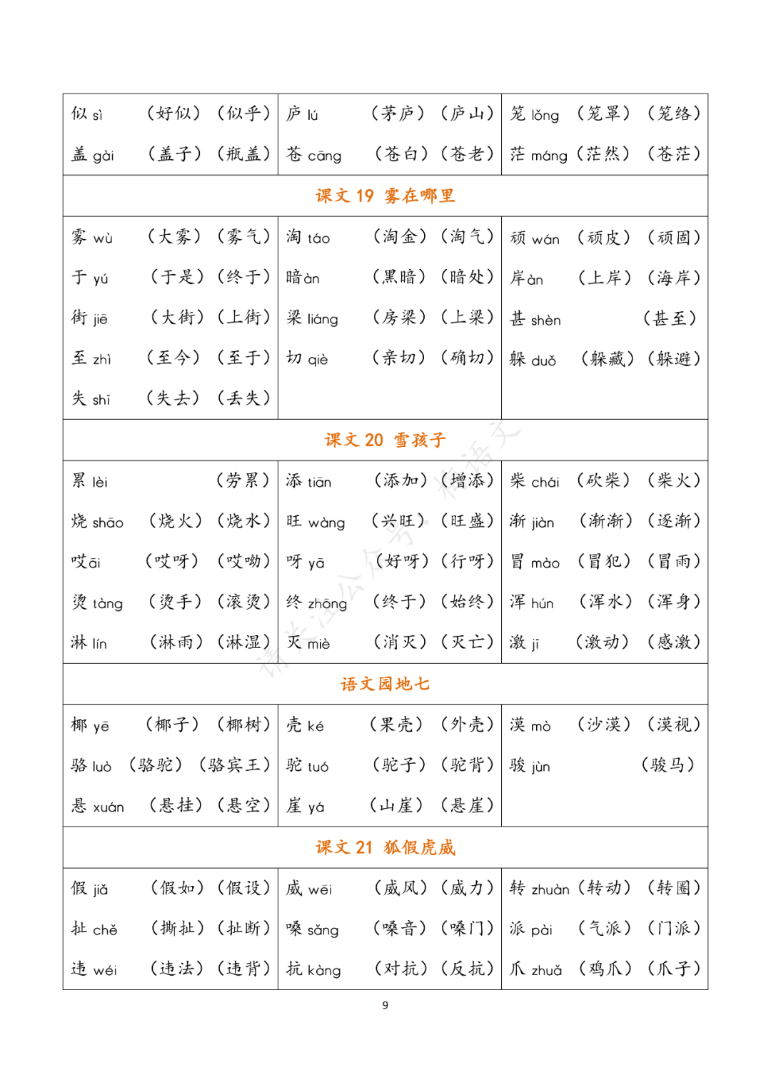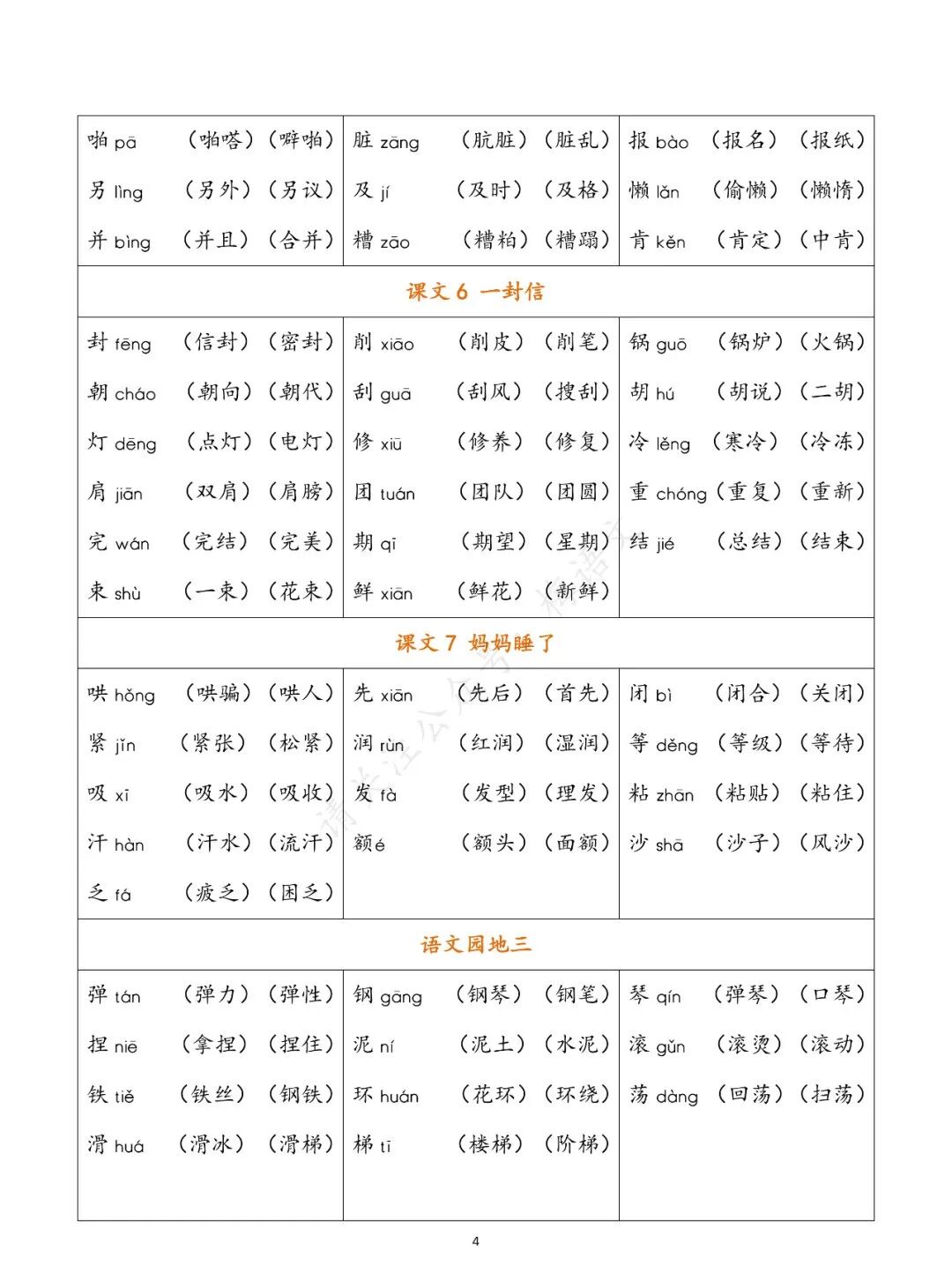 关注后发送消息“上册组词”