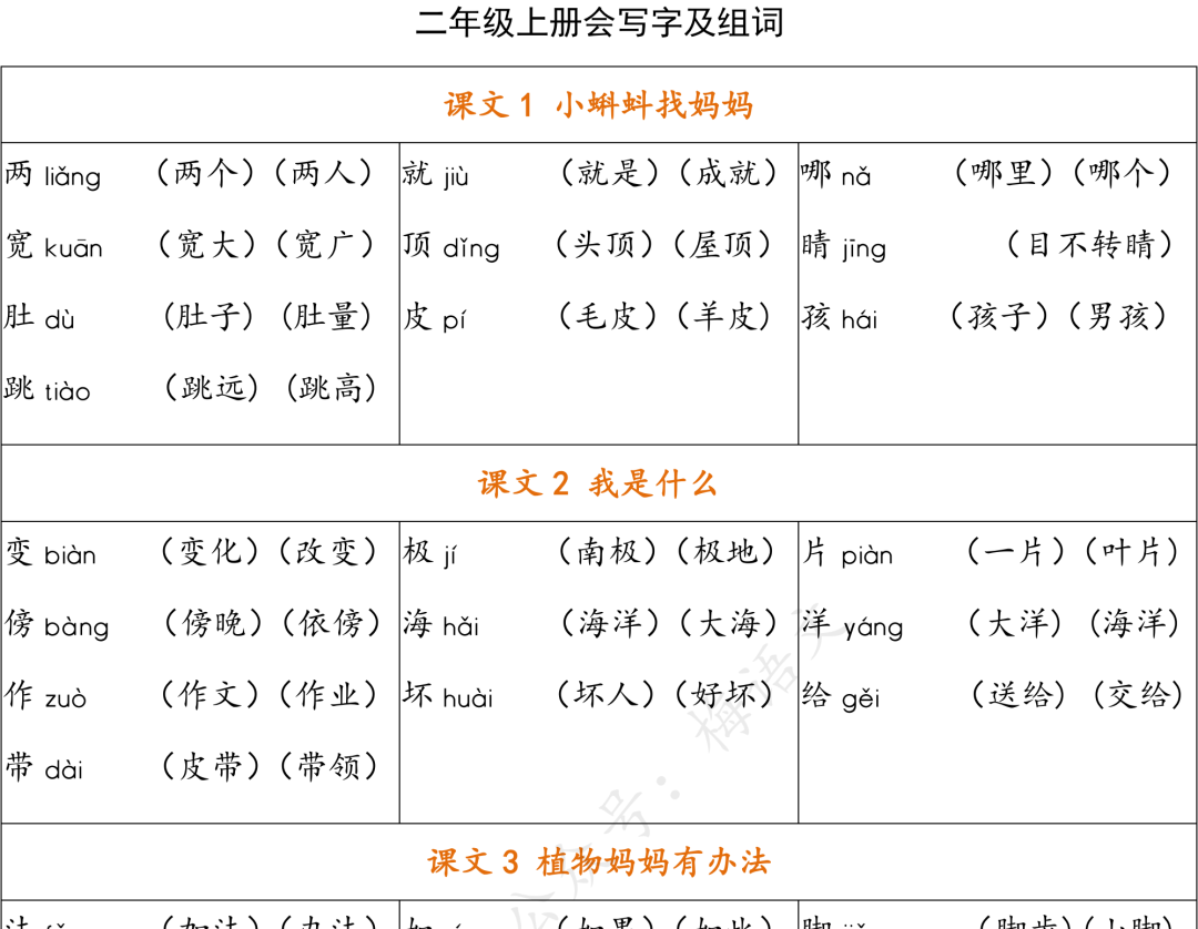 这份生字组词汇总是根据统编版语文上册教材整理,孩子新学期就要学习,在这里梅老师提前分享给大家,家长可以让孩子暑假提前背起来!