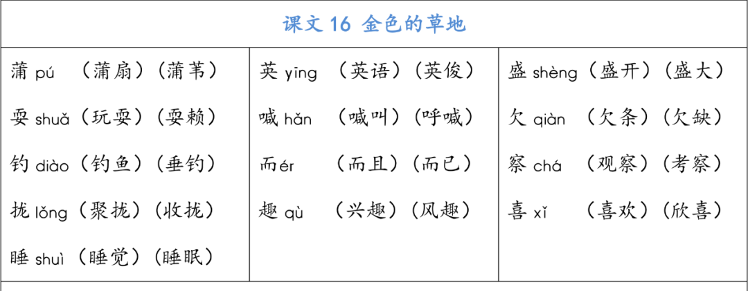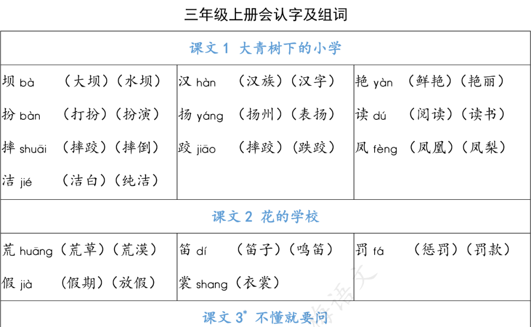 统编版语文三年级上册生字组词汇总丨可打印