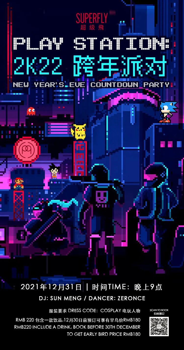 Entering 2022 with something fun in Superfly. Cosplay your favourite game character, dance with the most energetic dance group Zeronce and bounce with DJ Sun Meng. Get down with us in our 2k22 New Year's Eve party! | ||