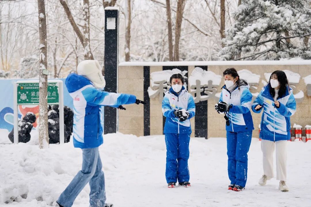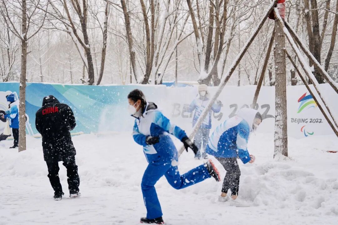 During the Olympics, Beijing witnessed a huge snowfall. Tsinghua volunteers in the Winter Olympic Village took photographs, capturing the precious moments of joy they had playing in the snow.