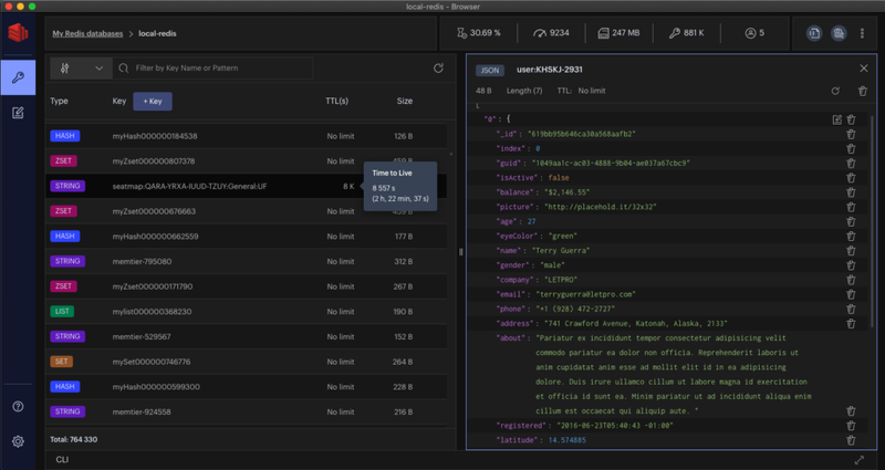 RedisInsight 是一个直观高效的 Redis GUI 管理工具,它可以对 Redis 的内存、连接数、命中率以及正常运行时间进行监控,并且可以在界面上使用 CLI 和连接的 Redis 进行交互(RedisInsight 内置对 Redis 模块支持)。
