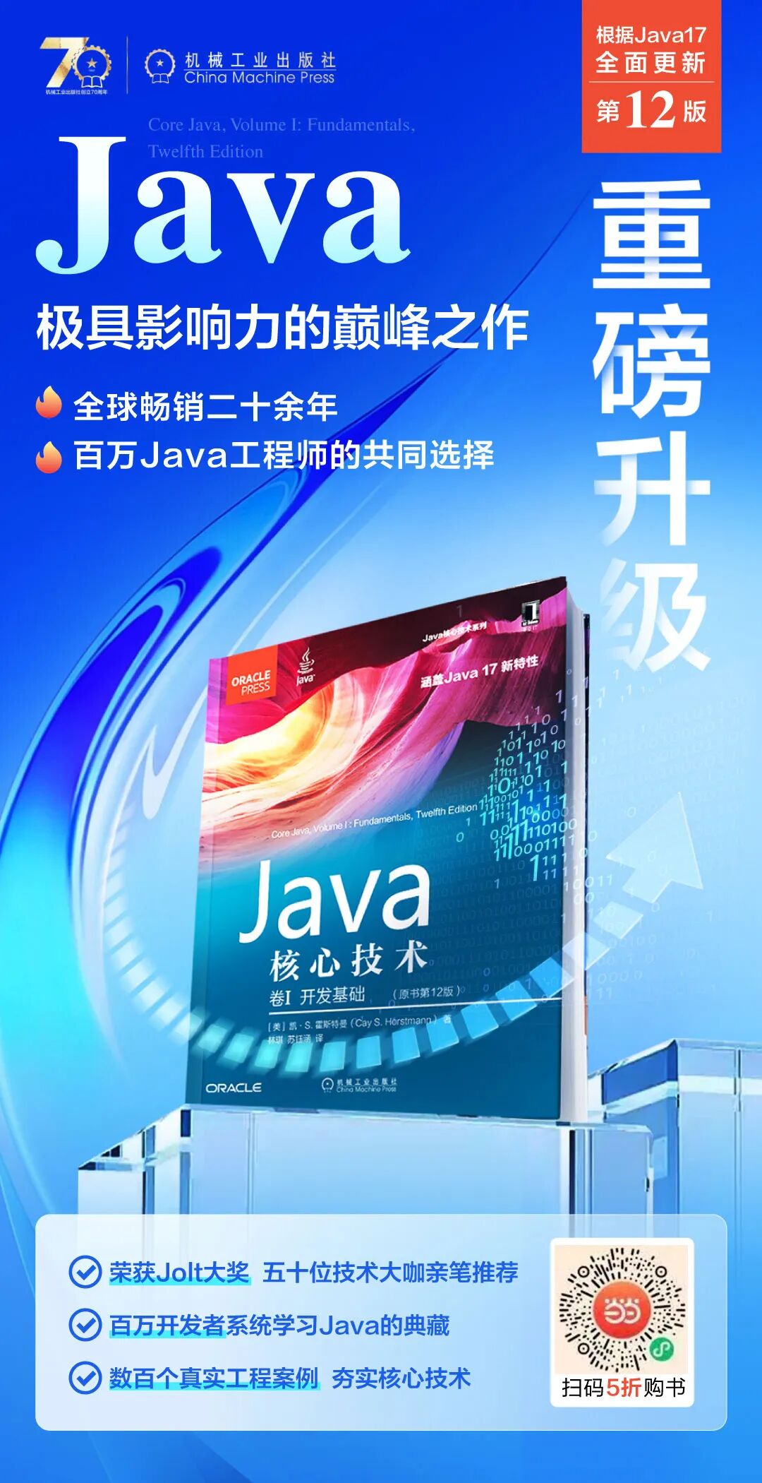 27年间,每当 Java 有新的 LTR 版本发布,这本书都会随之更新,这次也不例外。现在,针对 Java 17 新特性的《Java核心技术》第 12 版*中文版(卷1)终于上市了!