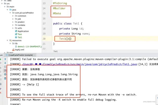 Lombok使⽤ 同时使⽤@Data和@Builder ,构建无参构造器报错!编译不通过。如下图: