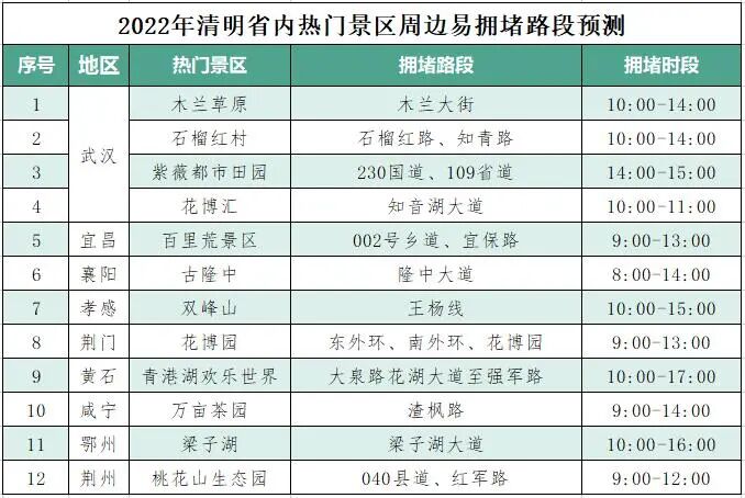 ▲2022年清明省内热门景区周边易拥堵路段预测