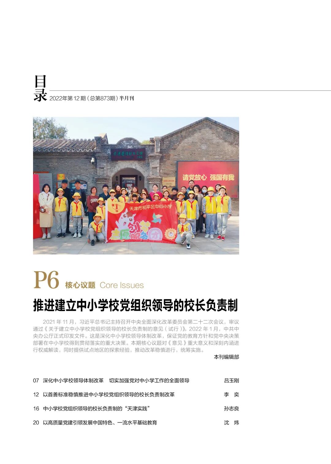 本期核心议题聚焦“中小学校党组织领导的校长负责制”,既有对《意见》重大意义和深刻内涵的权威解读,也有试点省份的探索经验。今年将召开党的二十大,做好中小学校党建工作意义重大,影响深远。