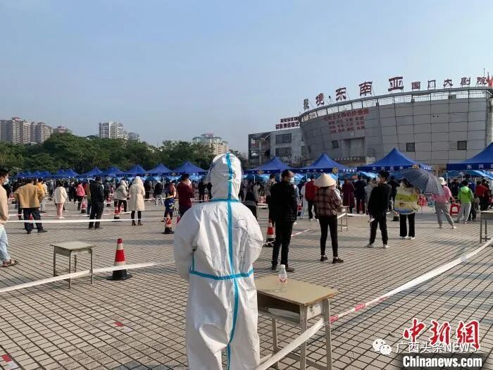 东兴民众排队采样。苏世钰 摄
