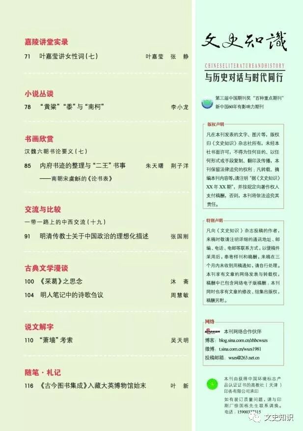 七、敬告读者:自2018年7月1日起,《文史知识》编辑部不再接受任何购买咨询,如欲购买《文史知识》新刊、过刊、历年合订本等销售问题,敬请致电中华书局伯鸿书店(010-63458912、010-63265380),感谢您的理解与支持。