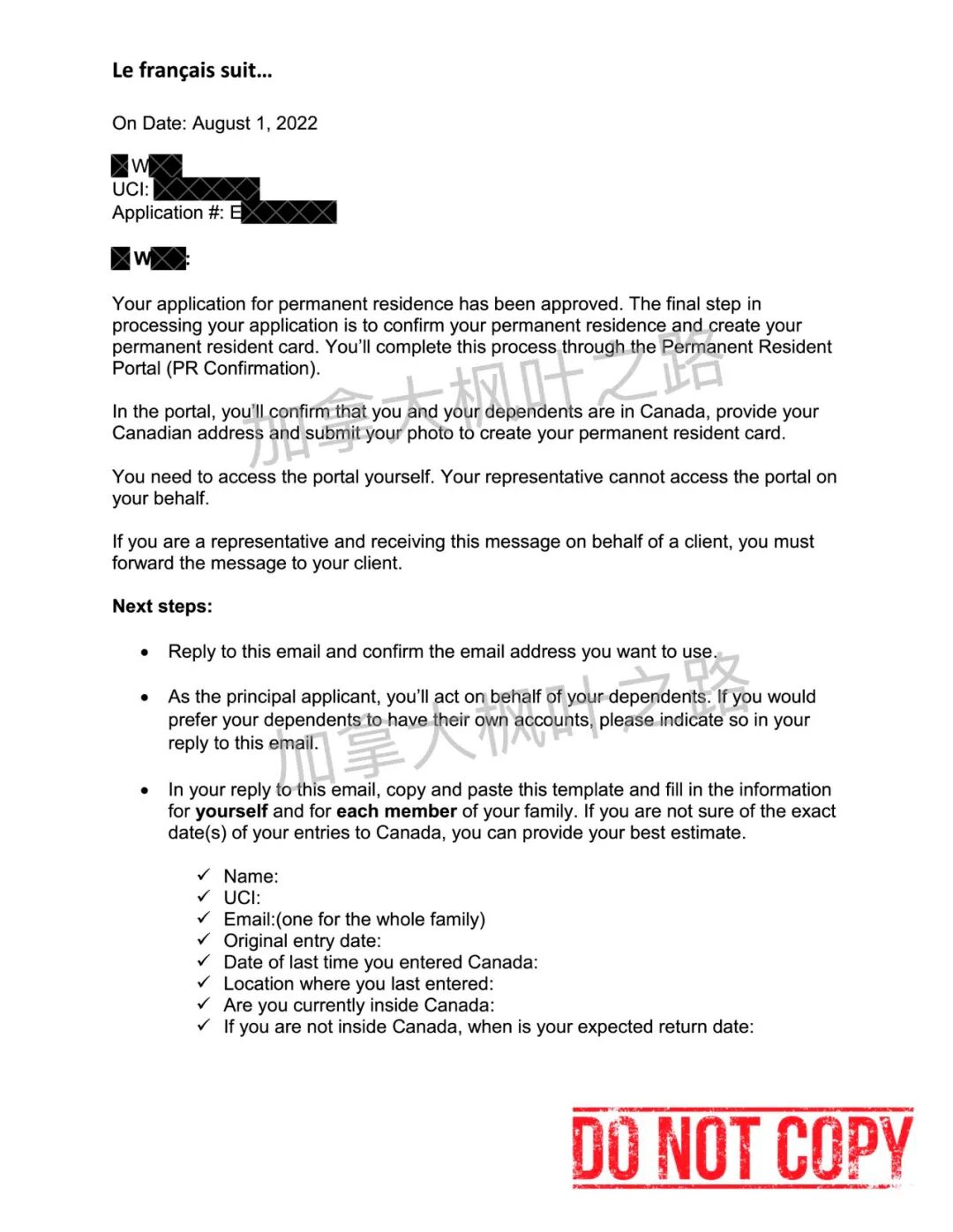 本月初又一位喜获加拿大PR的客户!恭喜W女士!曾拥有十余年互联网测试工程师经历的W女士所申职位是 NOC 2173 软件工程师和设计师,途中因疫情耽搁进度,也收到多次补件通知,但好事多磨,在我司不遗余力的帮助下,终于获批枫叶卡!也欢迎广大 IT 从业者联系我们咨询移民事宜,大批优质雇主虚位以待✌️