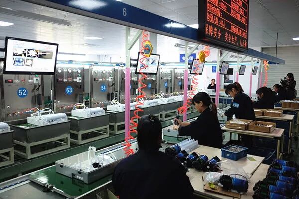 ▲灏钻科技反渗透组装车间的环形工装流水线