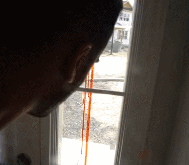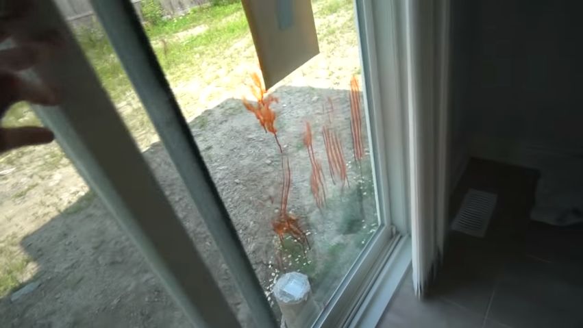 △ “快递员”在落地窗门上涂上了血迹“提醒”主播取货