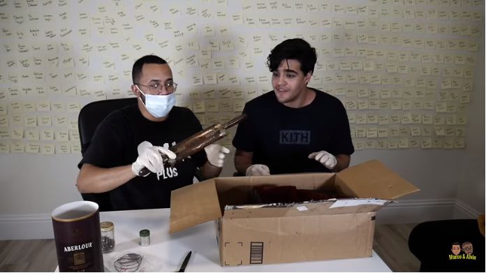 在reddit暗网福袋事发的同一个月,一家叫MKP Studio的频道便发布了一只暗网福袋的开箱视频。在播放前,我们可以看到条视频的封面十分诡异,令人不寒而栗。难道主播花1万美元买的暗网福袋里有什么血腥恐怖的东西?