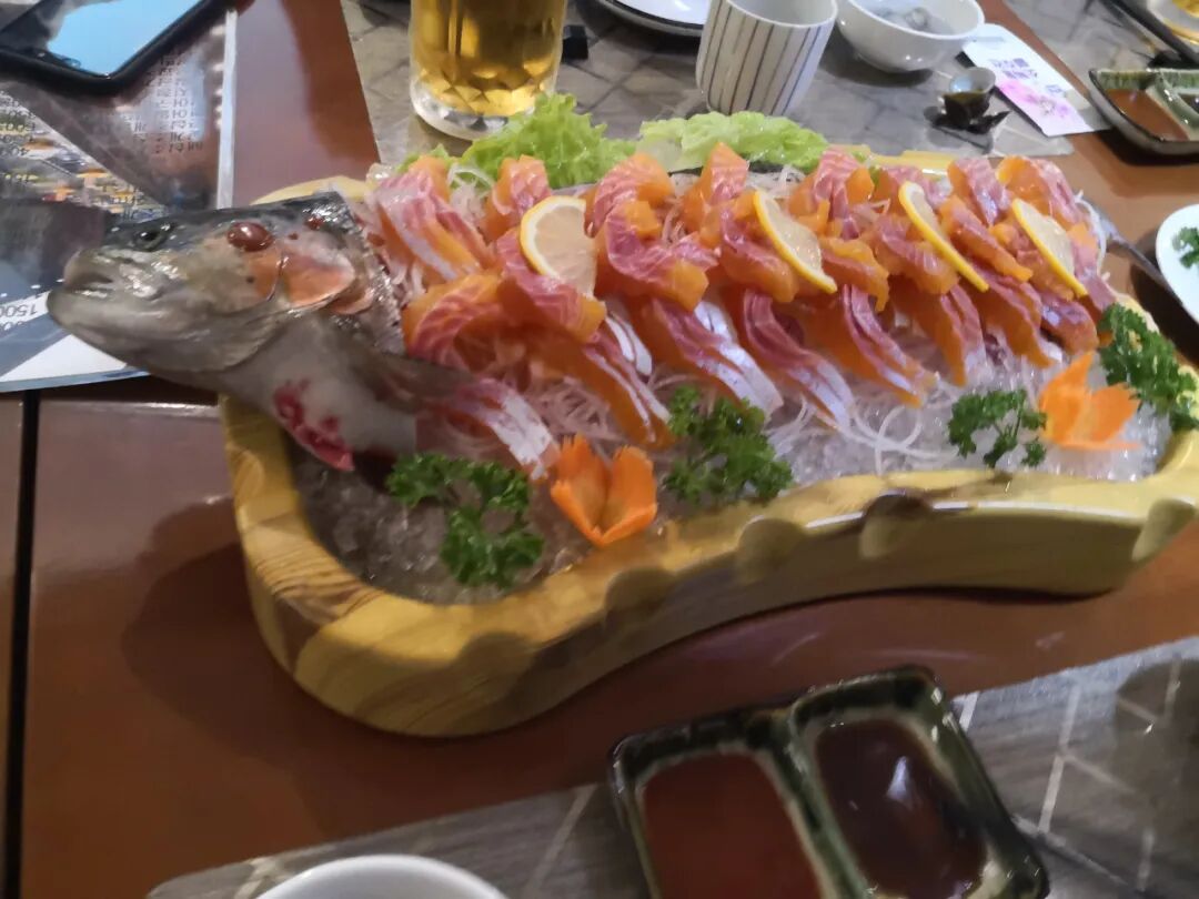 还有平壤特色刺身店,从一进去完全是个游泳馆景观,各个巨大的池子里面饲养着各类活鱼,属实奇葩。你喜欢哪条,有服务生帮你打捞上来送到后厨,立刻开片。这里是高消费地带,我们吃的很少,但是也消费了近两百美元。