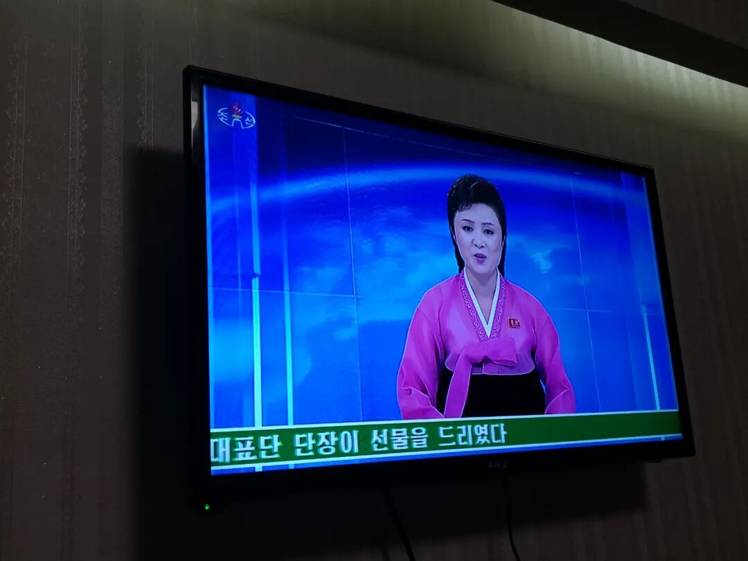 留学生宿舍里的电视节目不是二十四小时播放,基本到晚上十点钟左右就停播了。朝鲜的电视节目主要是三种: