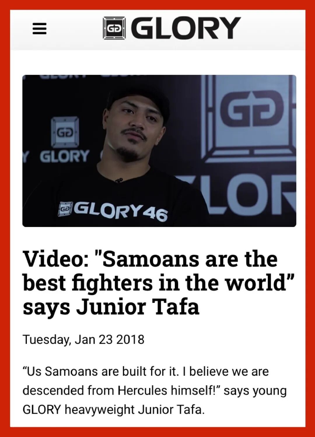 现役综合格斗选手Tafa接受采访时就说:“我们萨摩亚人天生就是格斗家,我相信我们是大力神赫拉克勒斯的后代”。![]()