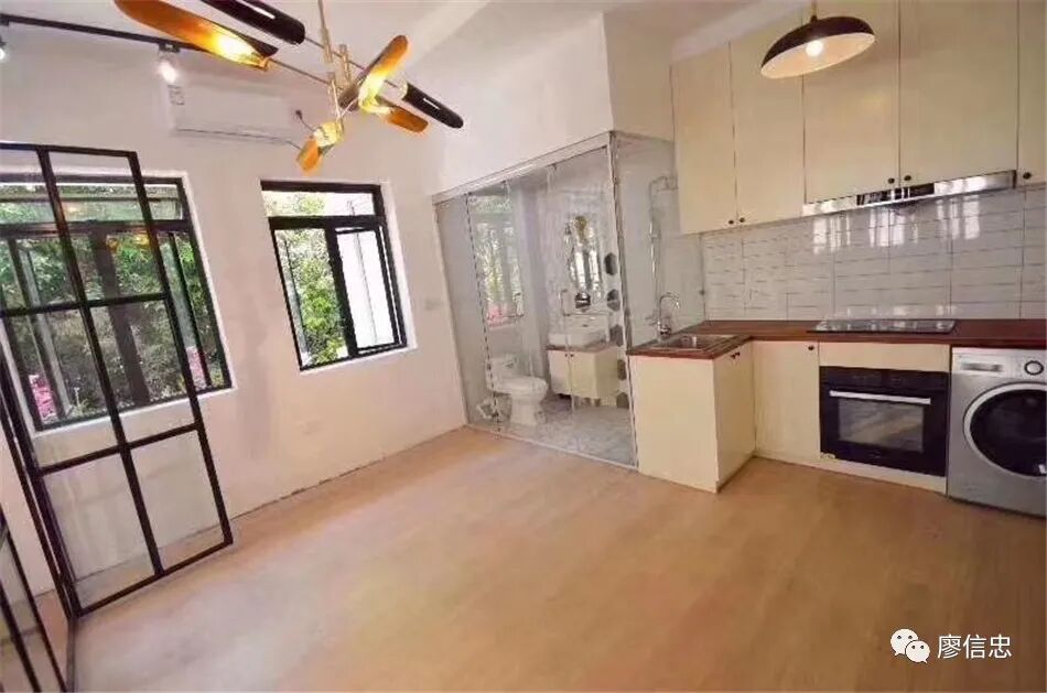 这个价位,这个房型,自带了卫生间厨房和门关,约30平米;你稍微发挥一下"房子是租来的,生活不是"的消费主义精神,整理整理房间,大开窗采光不错,你终于有些底气说"我住在武康路!"了