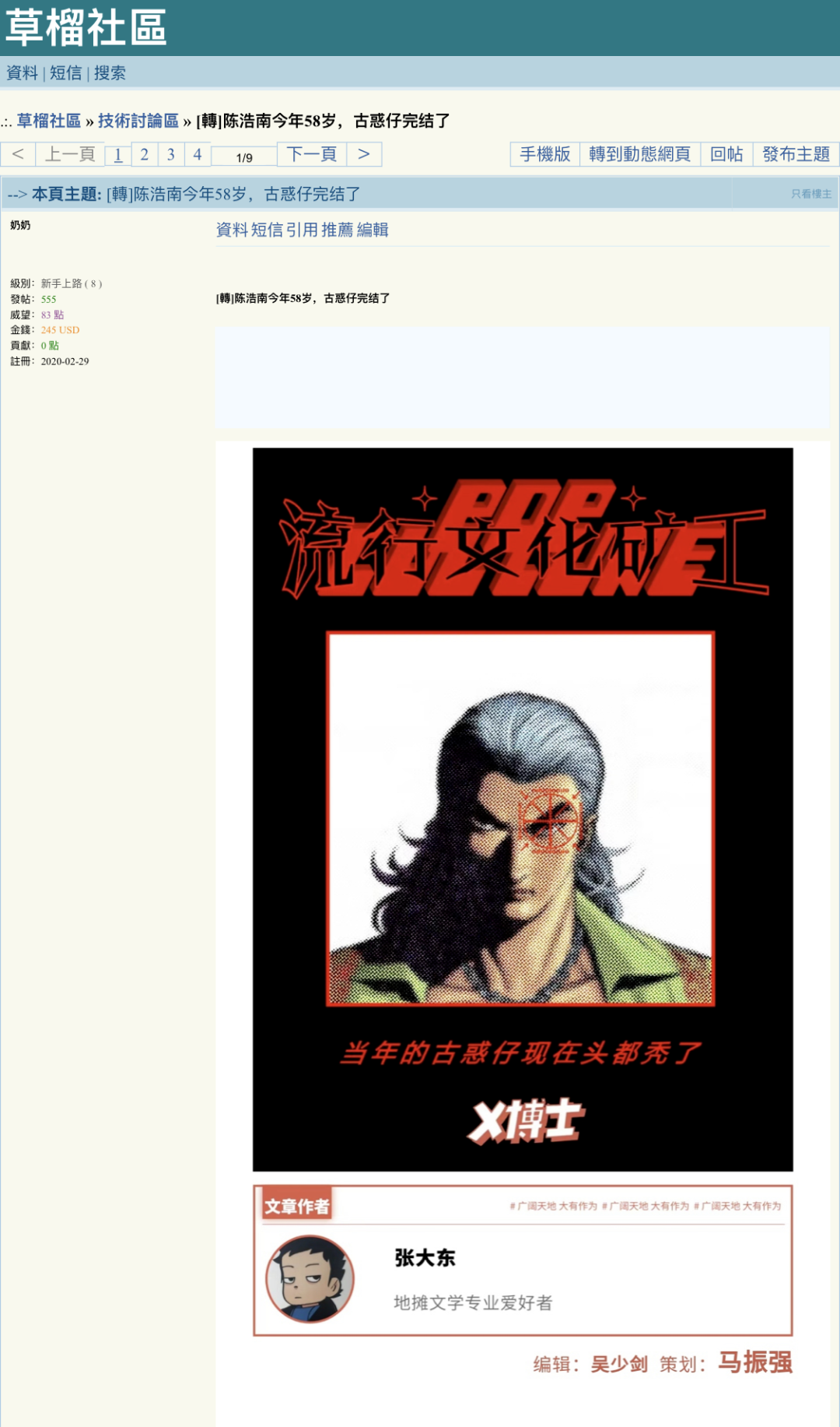 事实上,在五月份时,我们的《陈浩南今年58岁,古惑仔完结了》就被一位叫作“奶奶”的用户转发至草榴。