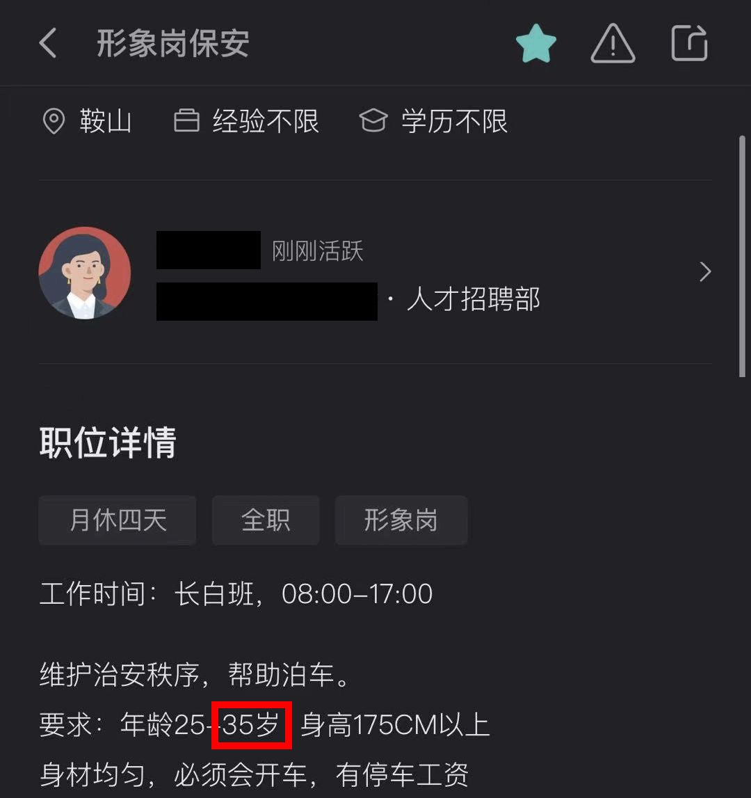 哪管你想做一个“上班为了下班”的保安,也同样需要有一张35岁以下的脸。