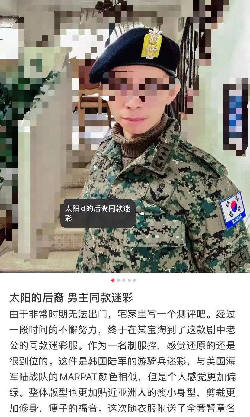 而疑似单身,体检视力不合格的制服控也整了一套《太阳的后裔》里的同款韩军军服。