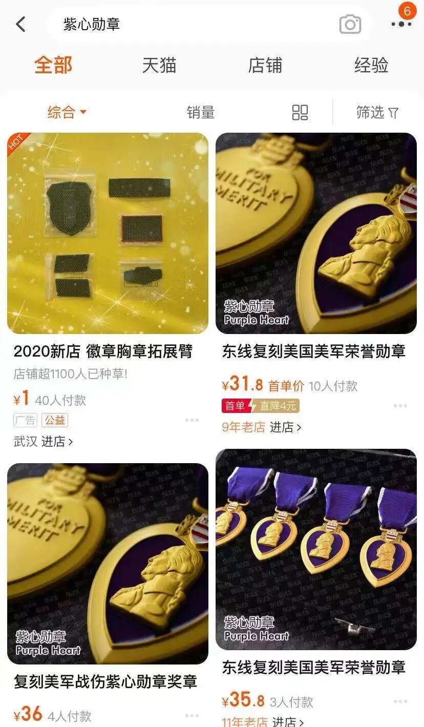 ·打开淘宝,搜索“紫心勋章”