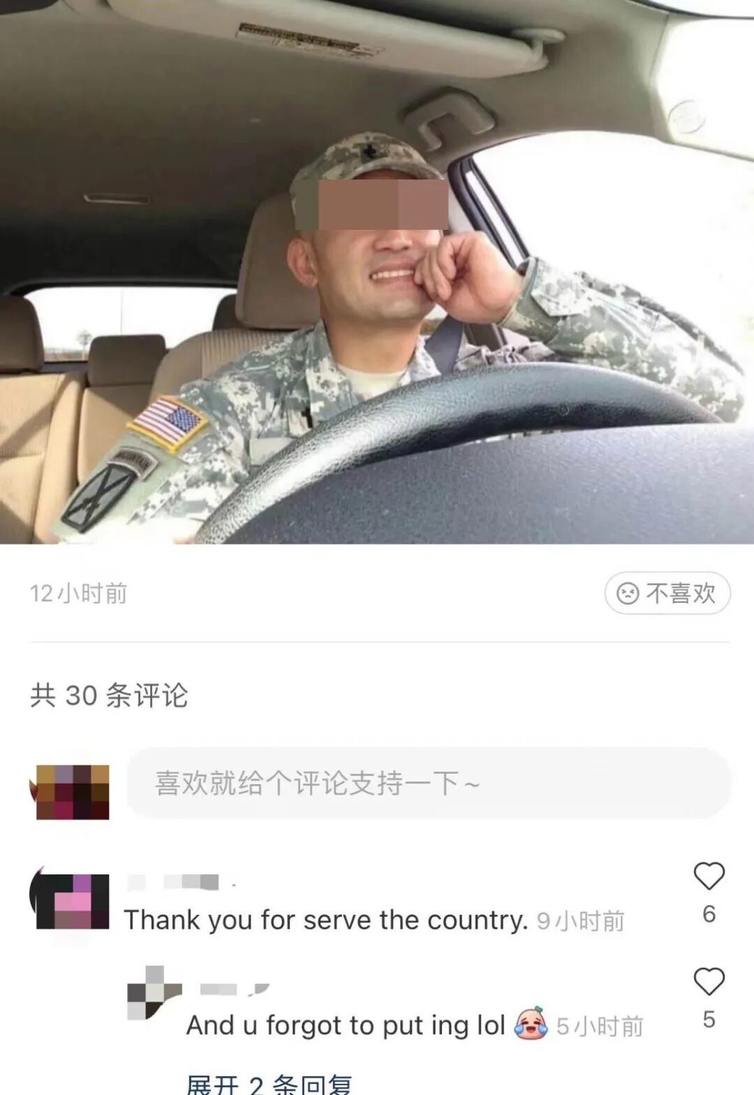而在“美军恋”的评论区里,讨论环境十分友好,没有恶言相向,也没有赛博军迷们的唇枪舌剑,有的只是满满的祝福,以及求介绍战友。