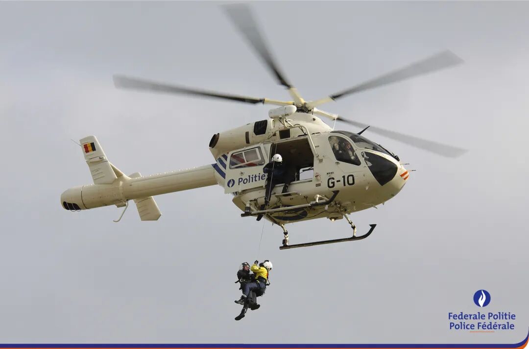 在比利时,五名受灾居民被直升机救出: