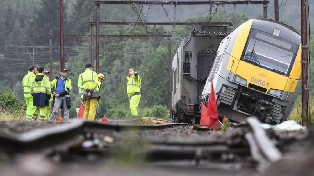 比利时受灾最严重的东部地区陷入“铁道瘫痪”,火车全部停止运营。