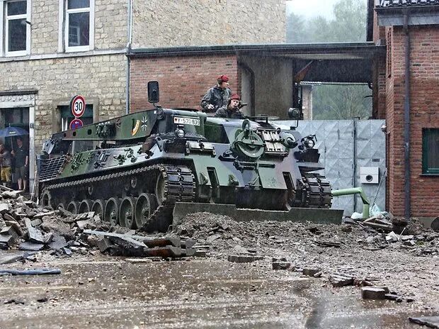 目前,德国军方已向北莱茵-威斯特法伦州部署了850余名士兵和其他重型装备,以帮助受灾严重的街道,拯救被洪水围困居民。