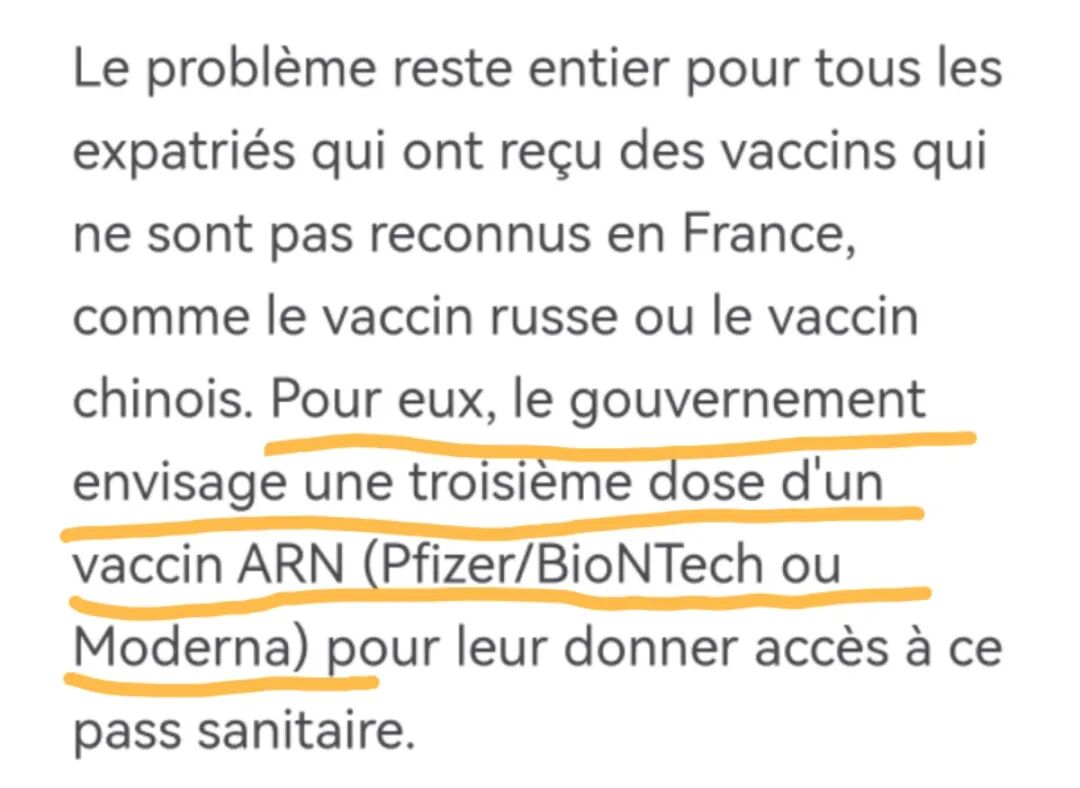 也就是说,即使你是法国籍,打了国产疫苗也照样拿不到健康通行证。就更不用说非法国籍了……
