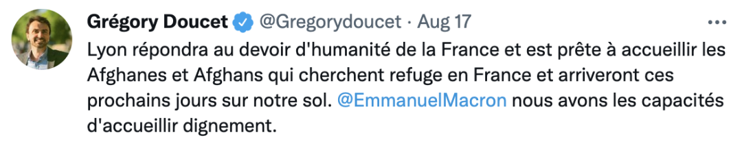👉里昂将履行法国的人道主义义务,准备迎接在法国寻求庇护的阿富汗人,他们将在未来几天抵达我们的领土。我们有能力体面地接待他们。