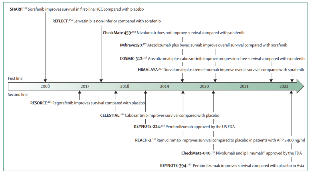 ▲肝细胞癌全身性治疗的重磅里程研究(图片来源:参考资料[1])