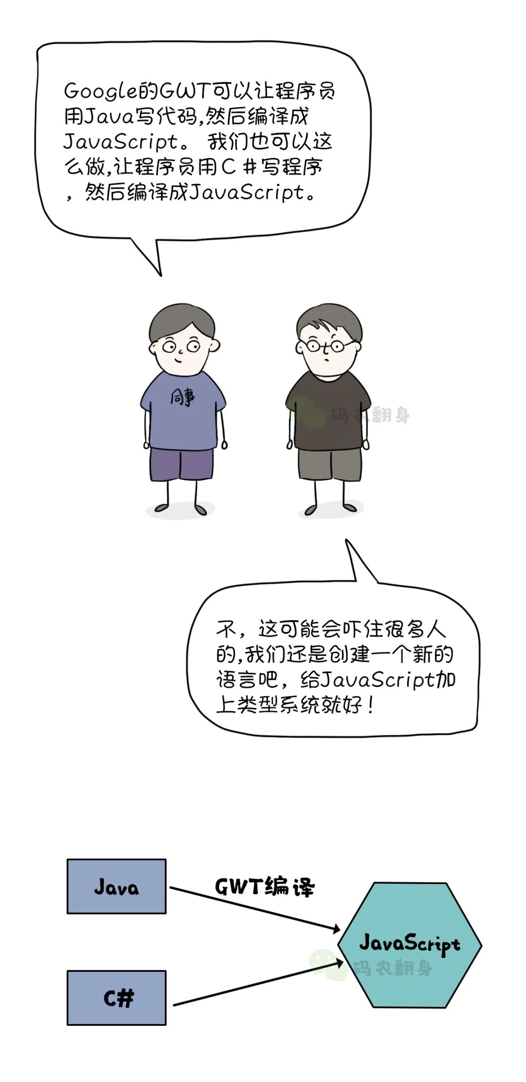 这个新的语言就是著名的TypeScript, 它是JavaScript的超集,在编译时,TypeScript会删除所有类型并将代码还原成JavaScript。