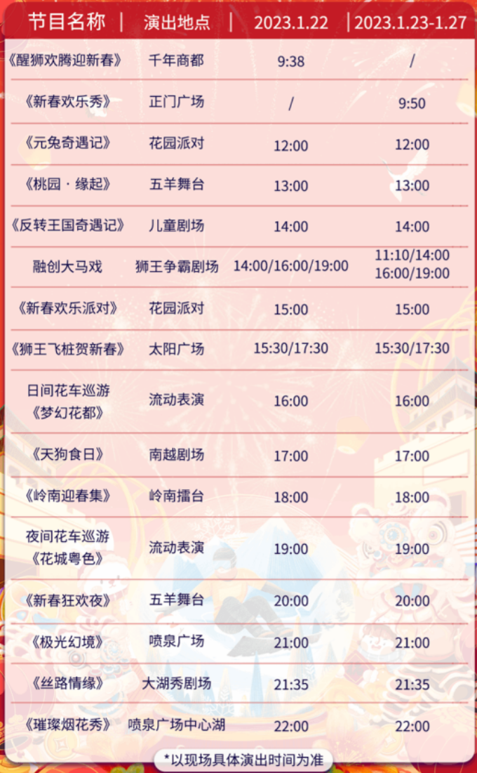 表演时间:正月初一至初六16:00、19:30各一场