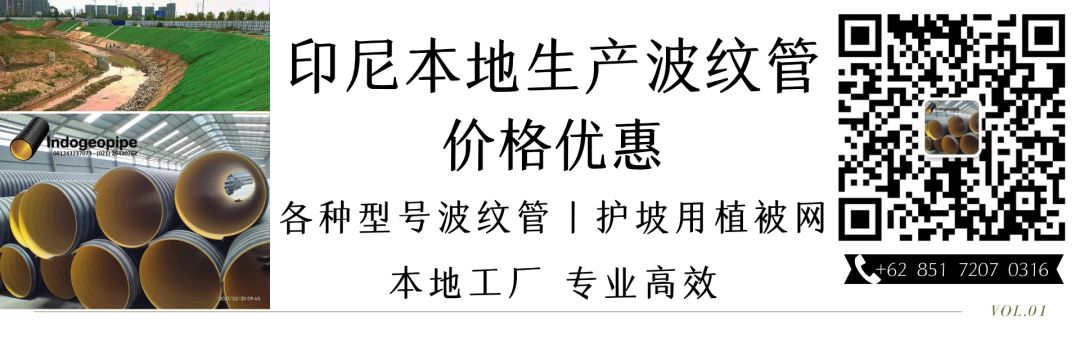 印尼本地工厂,生产波纹管,护坡用植被网,土工格栅,土工格式