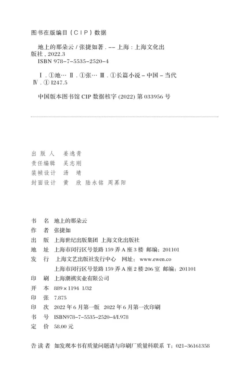 阅读和写作,都是相当孤独的经历。前者用一个他者的壳,扎进读者最真实的内心;后者以作者最本质的自我,磨砺出一个个虚虚实实的形态。人类连悲喜都难以相通,更何况是如此私密的过程。这样的孤独听起来有点痛苦,但神奇的是,当把自己浸淫在这种孤独中后,竟对人生的其他种种孤独产生了抚慰的作用。就好像我们通过阅读和写作这种“主动获得”的孤独最终练就了一项强大的本领——在面对人生不得不面对的“被动遭遇”的孤独时终于能游刃有余、泰然自若。孤独,也从来是人生的本色。如此看来,阅读和写作又不啻为人生的一剂良药。对我而言,找到这剂良药是从学会读写开始的。在阅读里享受情绪的极致悲喜和精神的极致紧绷松弛,却不需要承受任何现实的压力,我找不到比这更安全的既充满刺激又抚慰人心的方法。然后我开始练习写作,渐渐地在创作的世界里找到与孤独坦然面对的机趣,更找到了心神世界的大自在。好友薛剑没说错,我是一个急性子的完美主义者——心中有目标,就不顾一切地起而仗剑。从传统纸媒到自媒体,从广告文案、书评剧评到时尚专栏、短篇故事,很长一段时间,我不停地写,享受这个过程,但却没有写出一部完整的长篇。这几年,当每日的瑜伽练习越来越加重打坐冥想的分量,不断练习让意识和身体都充分而踏实地沉浸在“此刻”,渐渐地,就变得对“达到目标”没有太大的执著心,而是更期待持久地做好每一天的功课。我不是愚公,不会移山,但是,山不过来,我可以过去。每天把双脚踏实地踩上大地,仰头看一下天空,敞开心扉,宁静心神,耐心而诚恳地做完每日的功课,即便最终没有翻过目标中的那座山,也一定是走在离山越来越近的路上。作为一个文学学士、性别研究硕士,如果没有写过一个完整的情感故事,对我来说是大概可以算是生命中不能承受之遗憾。2019年底,薛剑将她写的一个故事开头发给我看,让我重新审视“长篇”这个我没有翻过的山头,定下了每日位列榜首的功课。2020年初,全世界按下暂停键,身体被留在了室内,也让人更多地从向外求胜转为向内求安。在封城生活的间隙里,我把脑海中时不时跳出来的虚构故事的碎片、人物剪影、零星词句和在记忆里闪过的旋律或诗句随时记在纸片上和手机里。7月,孩子按计划去了夏令营,我开始在家务和瑜伽的功课之外耐心地把之前那些碎片拼凑起来,写一个完整的故事。8月中,写到十万字时,为了平衡日常英文写作能力,我开启了哈佛的修辞学线上课程。一个月后,我写就了这个十三万字的长篇故事;之后,起草了孩子幼儿园私校申请文书;再之后,完成了修辞学课程。经过了颠覆所有人认知的这两年,此时已是2022年的夏天。今年夏天的温哥华又湿又冷,可我的长篇《地上的那朵云》终于出版了;孩子也进入了我们都爱的学校;现在,我想,是不是该开始写一些中短篇的故事,或者,去完成一个更久以前的愿望——尝试一下麻省理工的哲学课程。不,我不想这么快做决定,停下来一会儿,感受时间的流逝和当下的安宁,就算是在任何形式的孤独里多呆几天,也没什么不好。这本书的定价据说略低于上海今年四月时一斤青菜的价钱。这样一本天天能吃常吃常新的青菜,是我在两年前温哥华封城期间的孤独里完成的作品,希望能让你在阅读的孤独中,体会到共鸣的惊喜、共情的抚慰,和对孤独更绵长的气定神闲。
