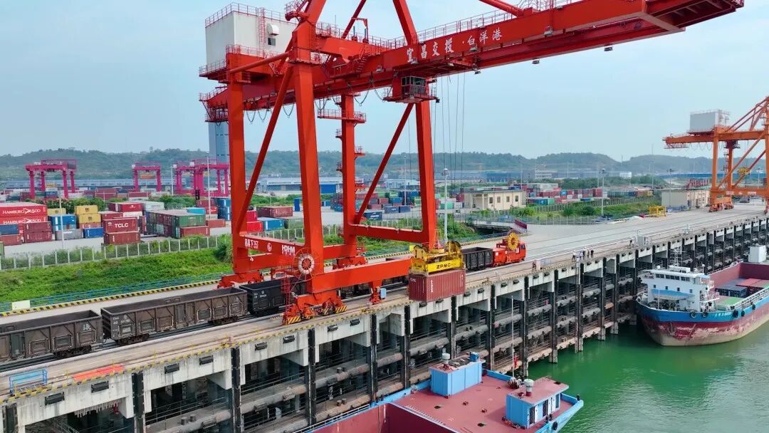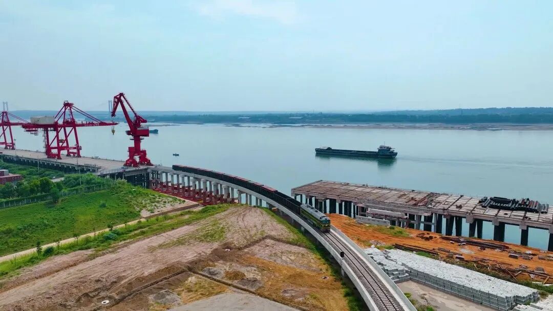 铁路装卸线引到栈桥平台,实现集装箱不落地直接装卸,减少传统水公铁联运多次转运、多次装车环节,解决了水铁联运“最后一公里”。