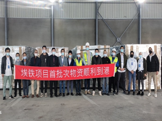 首批两列车及牵引变压器到港,埃及总统出席接车仪式。