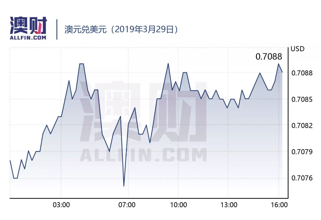 截至澳洲东部时间下午4:00,澳元兑美元报0.7088