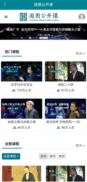 在拓展知识面来说,这里的国图公开课是一个不错的选择,课程种类多,而且资源权威,画质清晰,就非常的不错。