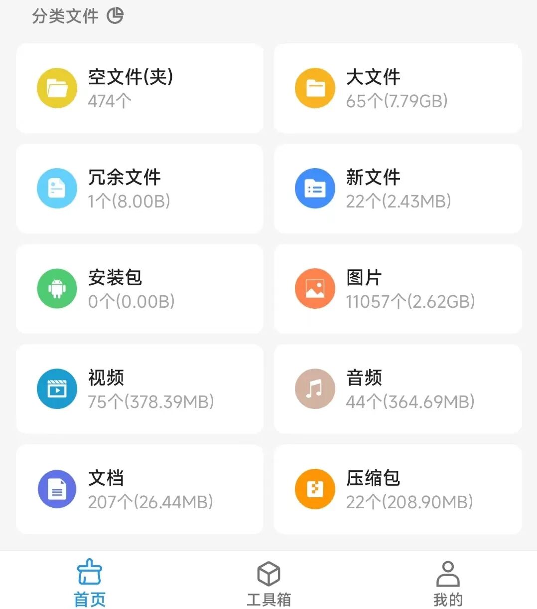 软件还会根据“分类文件”进行分类,方便大家清理软件。特别这里的大文件,能找出好多占空间的文件、视频和图片。