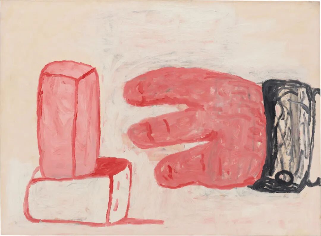 ▲ 菲利普·加斯顿(Philip Guston),《遗迹》(Relic),1974,油彩画布,90.2 x 216.5 厘米 / 35 1/2 x 85 1/4 英寸,摄影:Genevieve Hanson © 菲利普·加斯顿艺术资产,图片:艺术资产、豪瑟沃斯