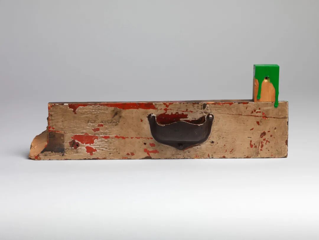 展览的最后一个展厅呈现了一组物件组合作品,其中使用了各种材料与拾得物,包括乙烯基胶水、塑料、石墨铅笔、木头与纸板,并借此唤起一种情色或超现实的意味。这些耐人寻味的作品在软硬材料之间展开研究,其中乙烯基胶水的「柔」与物件的「硬」相互牵制,而它的吸收能力又可以创造出许多有机的形式,并最终达到一种平衡。▲ 松谷武判(Takesada Matsutani),《无题》(Untitled),2017,乙烯基胶 拾得物,13.5 x 34 x 4 厘米 / 5 3/8 x 13 3/8 x 1 5/8 英寸,© 松谷武判,图片:艺术家及豪瑟沃斯,摄影:Ken Adlard![]()