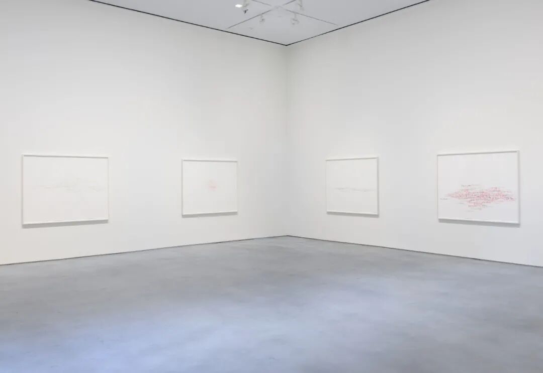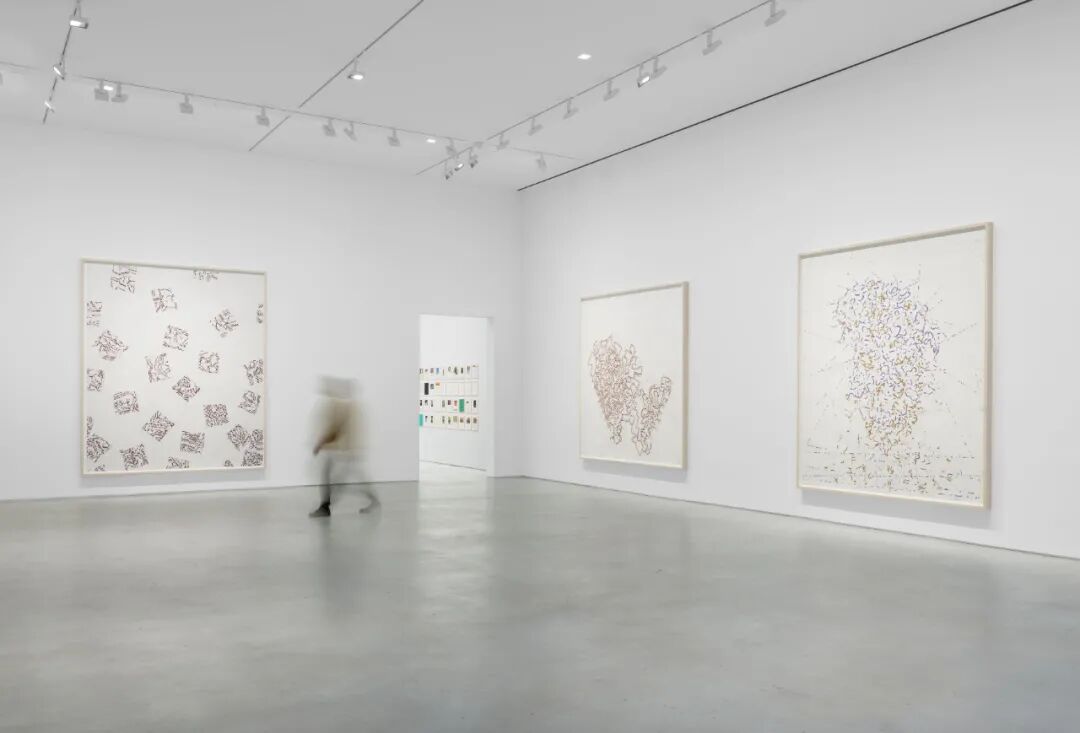 ▲ 「罗尼·霍恩:近作」(Roni Horn. Recent Work)展览现场,豪瑟沃斯纽约22街空间, 2021,© 罗尼·霍恩,图片:艺术家、豪瑟沃斯在四十年的艺术生涯中,她以不同的艺术形态时刻质疑「封闭」概念,并以充满不确定性的作品来挫败这一概念。「罗尼·霍恩:近作」(Roni Horn. Recent Work)将令观众近距离观察到她生动的绘画手法——艺术家本人将这种手法称之为“日常的呼吸活动”。▲ 罗尼·霍恩(Roni Horn),《智慧消散(埃尔维斯已离开建筑)v.1》[Wits’ End Mash (Elvis has left the building), v.1],2019,单独丝网印刷成语,手写原始文本,由应用程序编写,300人,丝网印刷纸上(Hahnemuhle纸卷,305克),多达50种颜色,132.1 x 162.6 厘米 / 52 x 64 英寸,摄影:Ron Amstutz,© 罗尼·霍恩,图片:艺术家、豪瑟沃斯▲ 罗尼·霍恩(Roni Horn),《智慧消散(埃尔维斯已离开建筑)v.1》[Wits’ End Mash (Elvis has left the building), v.1](局部),2019,单独丝网印刷成语,手写原始文本,由应用程序编写,300人,丝网印刷纸上(Hahnemuhle纸卷,305克),多达50种颜色,132.1 x 162.6 厘米 / 52 x 64 英寸,摄影:Ron Amstutz,© 罗尼·霍恩,图片:艺术家、豪瑟沃斯▲ 「罗尼·霍恩:近作」(Roni Horn. Recent Work)展览现场,豪瑟沃斯纽约22街空间, 2021,© 罗尼·霍恩,图片:艺术家、豪瑟沃斯,摄影:Thomas Barratt对于霍恩来说,绘画是一种“我感到最亲切的活动,很可能是我真正的母语”。她复杂的纸上作品不断检验着诠释、镜像与文字游戏等主题,同时探索着颜色的物质性与媒介的雕塑潜力。霍恩对语言的投入也贯穿于这些作品中:零碎的文字像是意识在纸上螺旋状流动。▲ 罗尼·霍恩(Roni Horn),《然而9》(Yet 9),2017 / 2020,粉状颜料,石墨,木炭,彩色铅笔,清漆,纸上,286.1 x 246.4 厘米 / 112 5/8 x 97 英寸,摄影:Ron Amstutz,© 罗尼·霍恩,图片:艺术家、豪瑟沃斯▲ 罗尼·霍恩(Roni Horn),《然而9》(Yet 9)(局部),2017 / 2020,粉状颜料,石墨,木炭,彩色铅笔,清漆,纸上,286.1 x 246.4 厘米 / 112 5/8 x 97 英寸,摄影:Ron Amstutz,© 罗尼·霍恩,图片:艺术家、豪瑟沃斯
