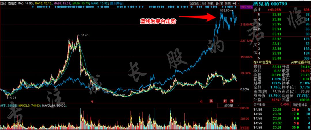 如今再翻开K线一看,酒鬼酒这小鬼还趴在地上,而白酒双强茅台、五粮液早已一骑绝尘,迈向星辰大海。