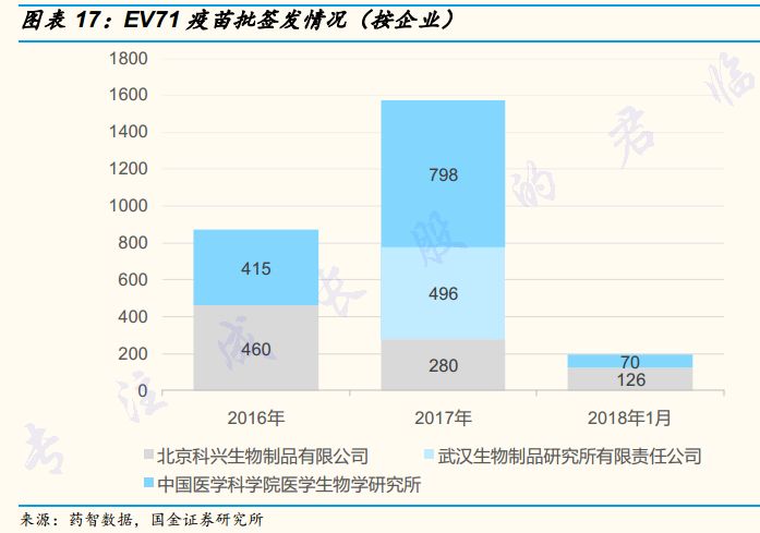 2016-2017年,昆明所、北京科兴和武汉所的EV71陆续获批上市,由于市场期盼已久,国际领先,迅速成为”网红“疫苗,签批量大幅增长。